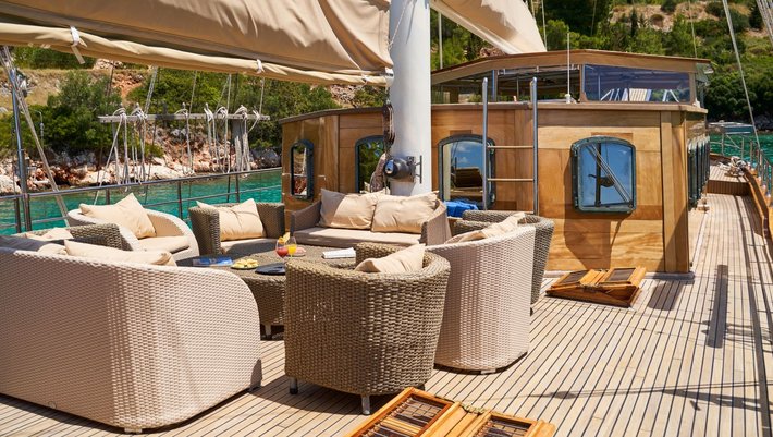 - Encantadora zona de estar exterior en la cubierta central con comodísimos sofás y butacas
