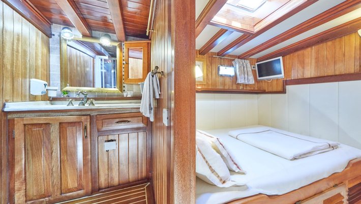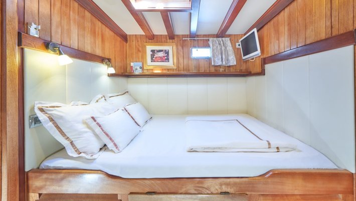 - 6 camarotes dobles todos con cama de matrimonio y baño en-suite, TV y aire acondicionado,